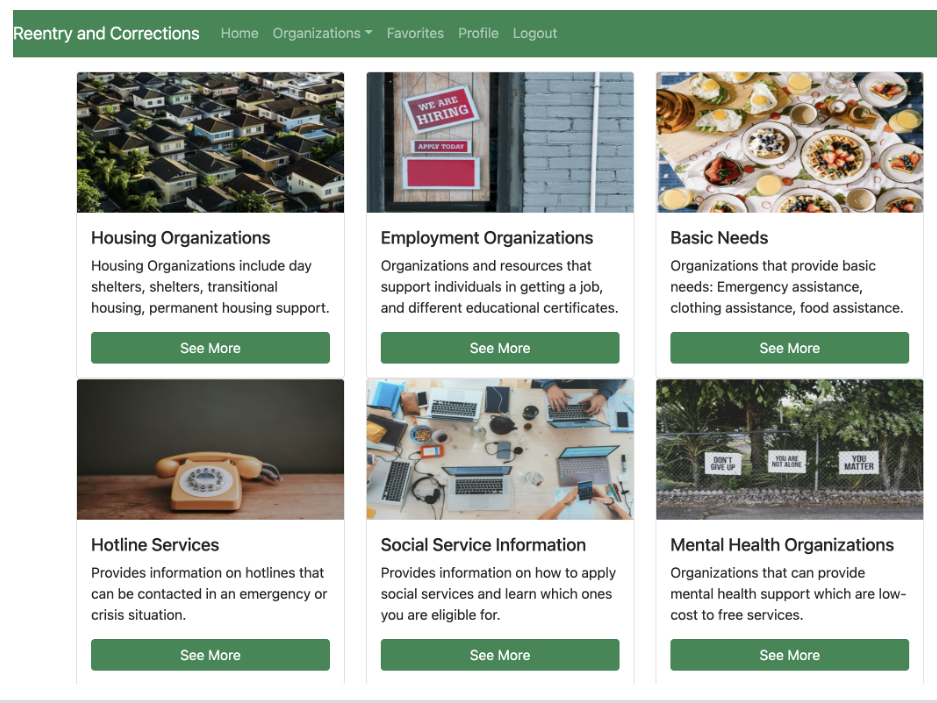 This project aims to support members of our community during re-entry after incarceration and help prevent substance abuse. The goal was to provide a technological solution that would be a source of continuity and help individuals anticipate challenges and brainstorm solutions, as well as combat stigma and distrust in our community.