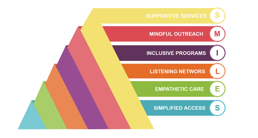 (Supportive services, Mindful outreach, Inclusive programs, listening networks, Empathetic Care, Simplified Access)
